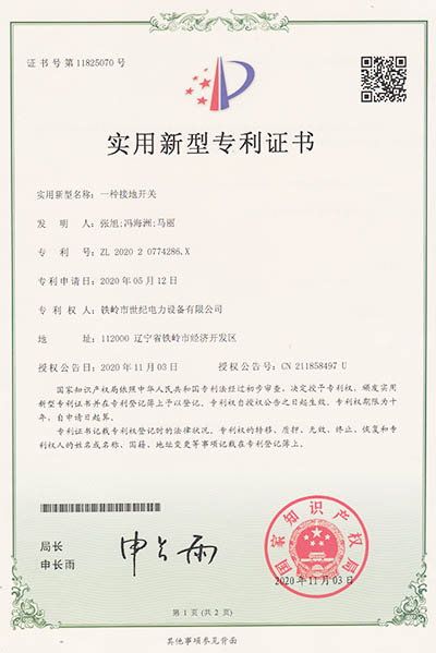 實(shí)用新型專利證書