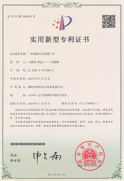 實(shí)用新型專利證書